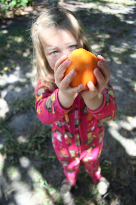 I have never tasted orange juice until this day. The neighbor let us pick a 5-gallon bucket and we juiced the pulp out of these babies. Seriously. Unpasteurized, succulent, wholesome goodness.